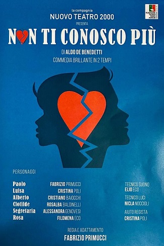 Venerdì 5 aprile, alle ore 21, presso l’Auditorium Vincenzo Da Massa Carrara di Porcari, per la première, la Compagnia Nuovo Teatro 2000 presenterà ‘Non ti conosco più’, una commedia in due atti di Aldo De Benedetti.
