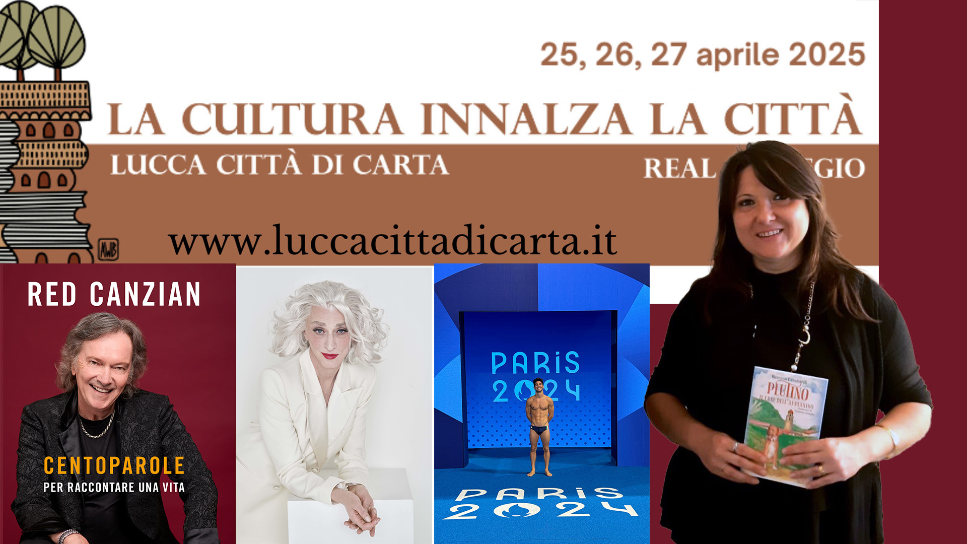 Red Canzian, storico bassista e voce dei POOH, Drusilla Foer, eccezionalmente in qualità di moderatrice,Lorenzo Zazzeri e Matteo Restivo della Nazionale Italiana di Nuoto, gli scrittori Marco Vichi, Valerio Aiolli, Marco Pardini, Matteo Rubboli, storico e fondatore del canale Vanilla Magazine e i lucchesi Stefano Tofani e Andrea Visibelli saranno tra gli ospiti della quarta edizione di Lucca Città di Carta, il Festival dedicato ai libri, alla carta, all’arte e alla stampa, che ritorna venerdì 25, sabato 26 e domenica 27 aprile 2025, con l’orario 10 – 19 al Real Collegio di Lucca (Piazza del collegio n. 13, Lucca) con ingresso gratuito.