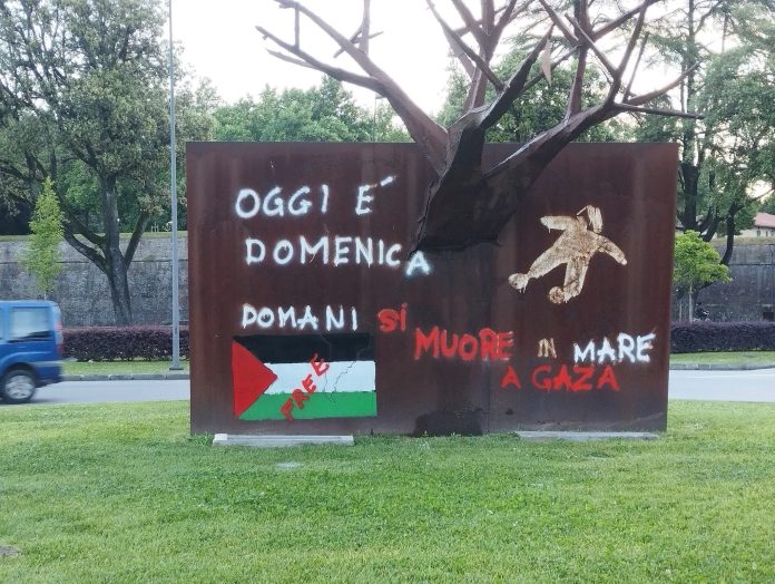 “Oltre le radici”, la scultura posta nella rotonda di Porta Sant’Anna all’ingresso della città di Lucca torna a fare parlare di sè. Nel 2021 l’autore Stefano Pierotti era infatti intervenuto sull’opera in metallo, modificando la sua scultura con la frase di Pasolini “Oggi è domenica domani si muore in mare”. Di recente, Pierotti ha nuovamente modificato l’opera, tracciando in rosso la scritta “free” sopra una bandiera palestinese, ricalcando anche in rosso le parole “si muore” e aggiungendo anche il finale alternativo “A Gaza”. La modifica sta alimentando un forte dibattito tra le forze politiche della città. Ascoltiamo nello speciale di Rossana Mamberto le voci dell’artista Stefano Pierotti, autore del monumento, del sindaco Mario Pardini e del consigliere di minoranza Daniele Bianucci