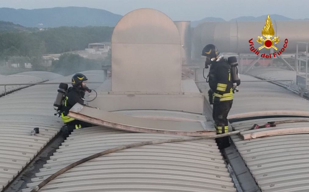 Un incendio ha colpito una parte dell’isolamento del tetto dell’azienda. Squadre e veicoli dei vigili del fuoco provenienti da tutta la Toscana