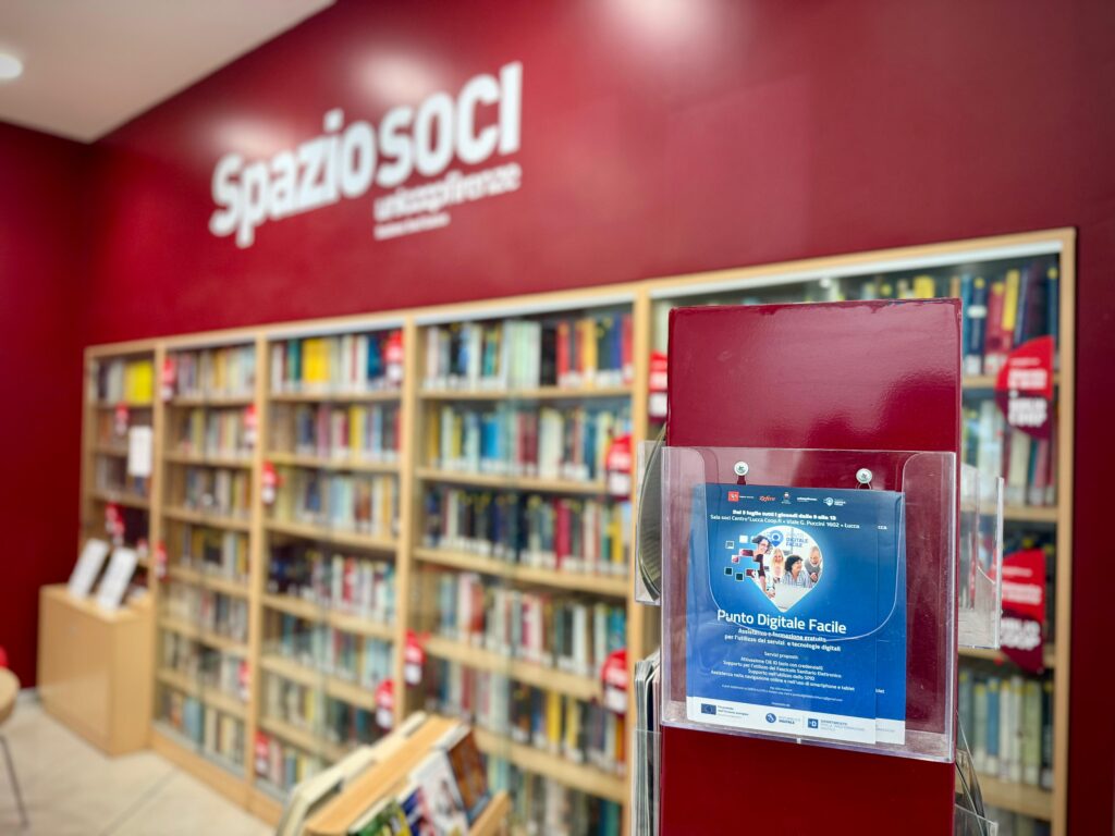 I Punti Digitale Facile si estendono anche ai Coop.fi: grazie alla collaborazione con la Regione Toscana, da oggi il servizio di assistenza nell’utilizzo di nuove tecnologie inizia nel punto vendita Coop di Lucca Viale Puccini dove il punto digitale beneficia della collaborazione del Comune di Lucca e del coinvolgimento della cooperativa Zefiro, che presidierà lo sportello, fornendo informazioni, aiuto concreto nell’accesso ai servizi digitali, incontri informativi e formazione. Questa mattina è stato inaugurato lo sportello nello spazio Bibliocoop del centro commerciale e sarà aperto ogni giovedì, dalle 9 alle 13.