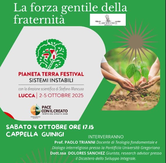 Nell’ambito del Festival Pianeta Terra, domani sabato 4 ottobre alle 17.15 a Lucca, nella Cappella Guinigi (complesso di San Francesco), si terrà un incontro con Dolores Sánchez e Paolo Trianni dal titolo “La dolce forza della fraternità”. Sánchez è una giurista, dottore di ricerca in diritti fondamentali e tutela ambientale presso la Scuola Superiore Sant’Anna di Pisa ed è anche consulente senior per la ricerca presso il Dicastero per lo Sviluppo Umano Integrale della Santa Sede. Trianni è un professore di teologia fondamentale e dialogo interreligioso presso la Pontificia Università Gregoriana, il Pontificio Ateneo Sant’Anselmo, l’Università di Trento e l’Istituto Teologico di Assisi. Insieme forniranno una prospettiva evangelica sul contesto storico attuale, caratterizzato da instabilità e solitudine. Infatti, nel Vangelo secondo Matteo, si legge: “Hai un solo maestro e tutti voi siete fratelli”.