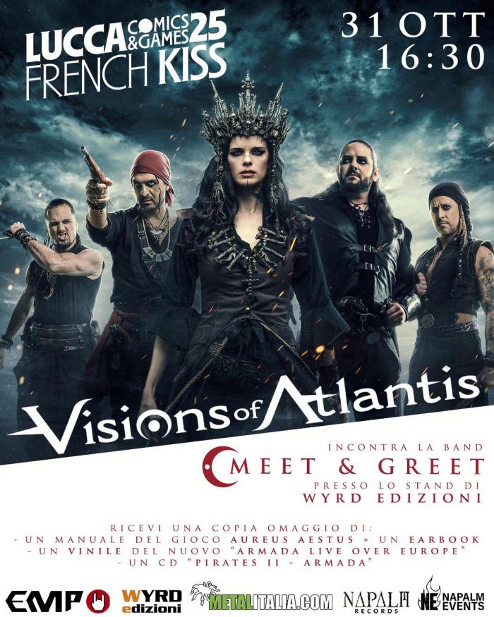 In occasione del concerto che terranno il 31 ottobre a Lucca Comics & Games, i VISIONS OF ATLANTIS incontreranno i fan in un meet&greet che si terrà alle ore 16:30 nel Padiglione Games presso lo stand di Wyrd Edizioni.