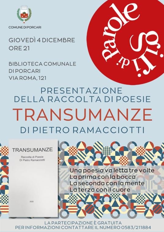 Il tuo indirizzo email è utilizzato esclusivamente per le nostre normali attività istituzionali (newsletter, diffusione di notizie relative ad appuntamenti, progetti e iniziative organizzate e/o sostenute dal Comune di Porcari e dalla Biblioteca comunale di Porcari)