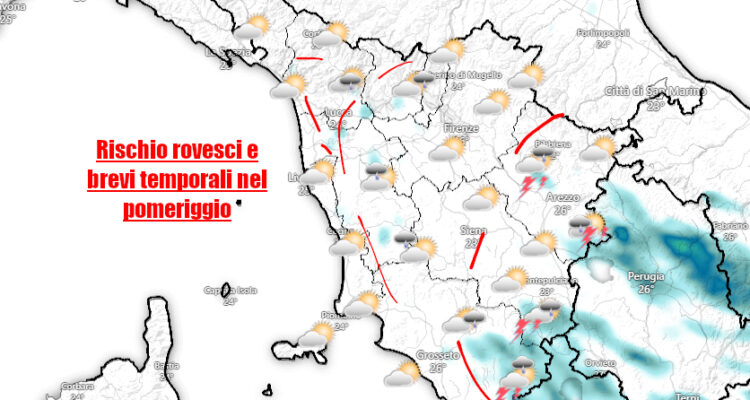 Temporali Appenninici tra Lucca, Pistoia, Prato e Firenze – Domani più presenti in altre aree – Meteo Toscana